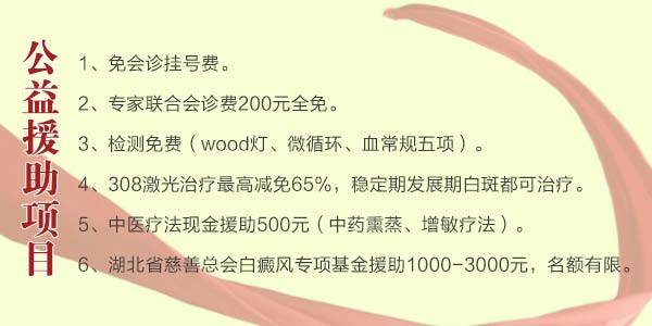 4)、湖北省慈善总会白癜风专项基金援助1000-3000元,名额有限。(援助条件:贫困患者凭有效证件:村、镇、县级贫困证明,低保或者残疾证明)